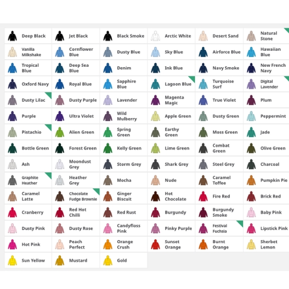 280 GSM Soft cotton faced fabric. Brushed back fleece. Drop shoulder style. Double fabric hood with self colour drawcord. Front pouch pocket. Ribbed cuffs and hem. Twin needle stitching. Tear out label.